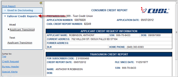 3. When credit bureau failover occurs, the credit reports from each credit bureau accessed will be available for display in CUDL3 and Lending 360. The credit reports are grouped into two sections: